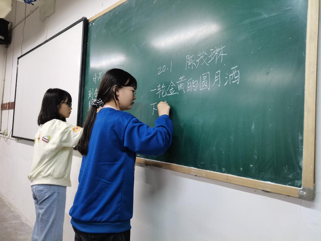 本次书法比赛分为毛笔组、粉笔组和硬笔组三组同时进行。粉笔组和毛笔组由抽签的形式从赛前准备好的短句中随机抽取比赛内容,自选字体进行作品创作;硬笔组书写内容则不作限制,在积极向上,展示个人风采的基础上进行自由创作和发挥。粉笔组由团总支学生会部分成员组成的评委组现场打分,赛后计算平均分;硬笔组和毛笔组由宣传部及老师根据作品评定标准对选手创作作品进行评定,遴选出优秀作品,各类别比赛分别取前10名,并附有荣誉证书和丰厚的奖励,有助于激发同学们的竞争意识。比赛中,同学们满怀激情,用心书写每一笔笔画、每一个汉字,尽其所能地展示自身书法的才能。比赛作品中无不透着或规范、或严谨、或灵动的气质,将化工学子的书生之气展现的淋漓尽致。经过学院认真公正的评选,此次比赛2020级5班杜攀月获得粉笔组一等奖;2019级3班钟美茜获得硬笔组一等奖;2021级3班马瑜获得毛笔组一等奖。