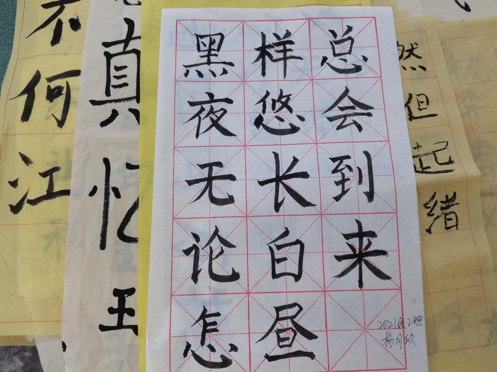 为了规范同学们的书写行为,提高同学们的写字水平,增强同学们对祖国汉字文化的了解,英国beat365官方网站于2021年10月22日18:30于南坝校区一教楼201、203、211教室举办第十六届三笔字书法比赛,大一至大三共两百余人参加。