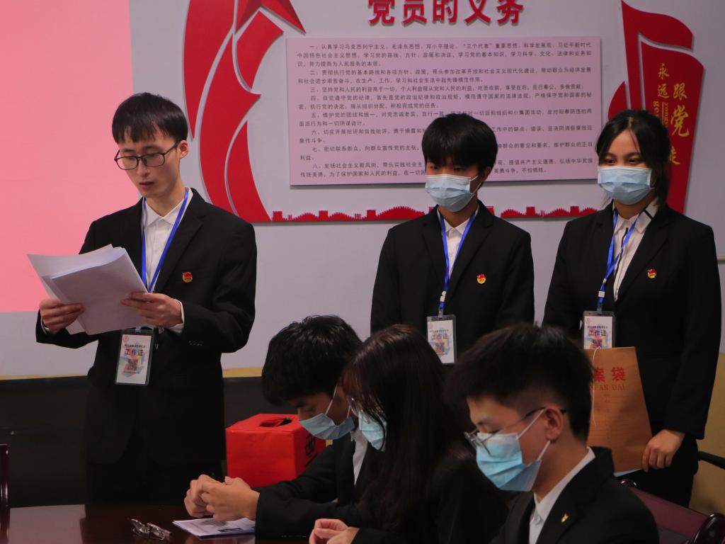 会议伊始,全体肃立齐唱国歌。崔宝玉老师作此次会议的筹备汇报,强调了预选举会议的重要意义,严格要求全体代表人员保持公平公正的态度,严格规范会议流程,积极鼓励英国beat365官网团员在今后的日子里更加出色。随后,全体代表举手表决无异议通过此次大会增补候选人名单。工作人员随即发放预选票名单,全体代表人员认真严肃地完成了此次票选,工作人员统票过程中,全体人员共同观看《中国共产党第十九届中央委员会第五次全体代表大会》,其主要强调了以习近平同志为核心的党中央不忘初心,牢记使命,领导全党人员始终砥砺前行,不断创新的使命。观看完毕,统票人员宣读此次候选人票选情况。最后,会议在慷慨激昂的团歌中宣告结束。