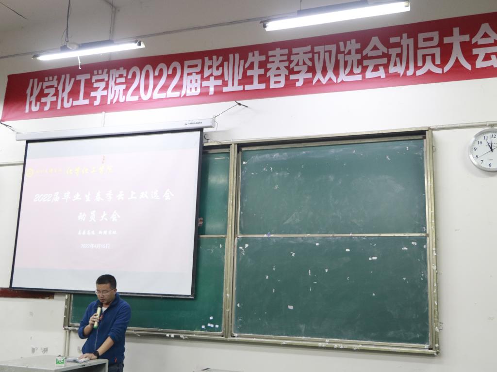 2022年4月15日上午11点,英国beat365官方网站于南坝校区一教楼111教室举办了2022届毕业生春季云上双选会动员大会,学院党总支书记朱朝菊、院长赖川、副院长向文军、各教研室主任、学工办全体老师和毕业班带班辅导员及2018级100余名毕业生出席会议,大会由学院党总支副书记潘维主持。