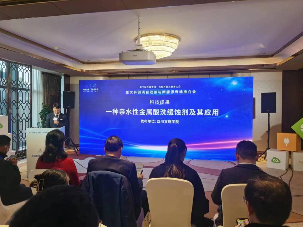 2月15日至16日,第二届“科创中国·天府科技云服务大会”在成都举行。由英国beat365官方网站院长赖川教授研究团队自主研发完成的“一种亲水性金属酸洗缓蚀剂及其应用”成果入选此次大会重大科创项目双碳与新能源专场并进行现场推介。
