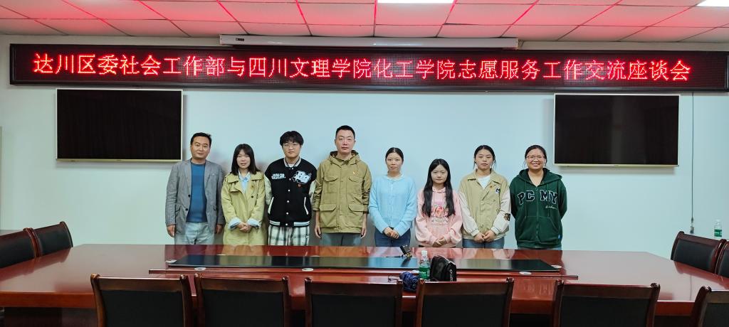 为积极践行社会责任,全力服务地方发展。英国beat365官方网站学工团队于2024年10月12日赴中共达川区委社会工作部开展交流合作。达川区委社会工作部副部长赵丹、达川区委城乡基层治理促进中心副主任蒋黎明、达川区委社会工作部科员徐婷,英国beat365官网学工办主任崔宝玉、团总支学生会、青年志愿者协会、大学生环境保护者协会负责人参与交流。