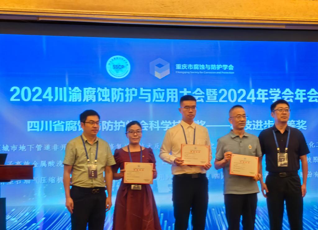 同时,会上颁布了2024年度四川省腐蚀与防护学会科学技术奖颁奖,其中学院赖川教授团队申报的“金属酸洗有机缓蚀剂的开发与应用”成果,荣获科技进步三等奖。