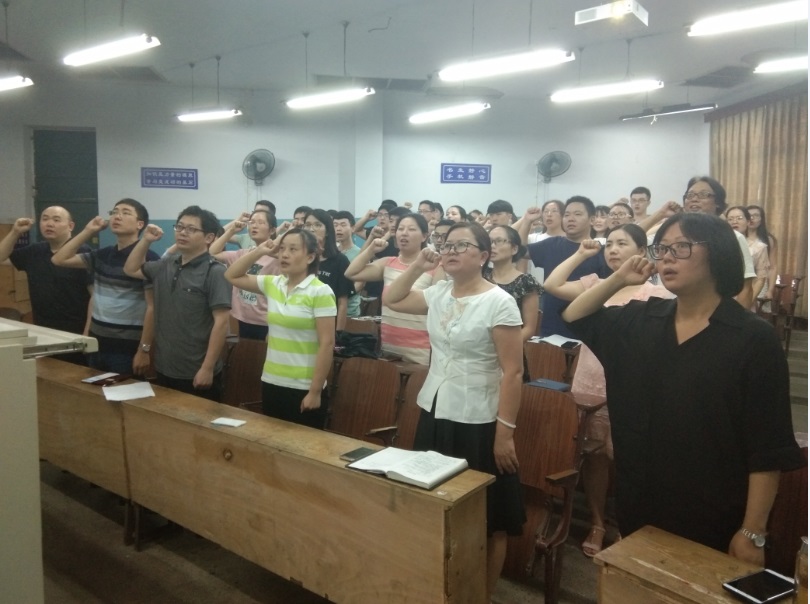 屈川同志向大家讲解了中国共产党的发展历史,通过对中共一大到七大会议内容的讲解,详尽展示了中国共产党建党以来的任务、路线和纲领以及不同历史时期的转变,特别是党在不同历史时期地曲折发展。党课结束后,全体党员重温了入党誓词。最后朱朝菊同志对全院党员提出了三点建议: