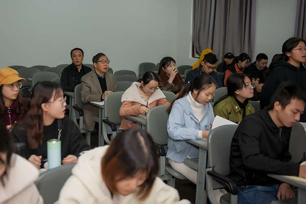 检查中,校长刁永锋一行首先深入课堂,随机听取了学院陈安银、张学平老师的授课。