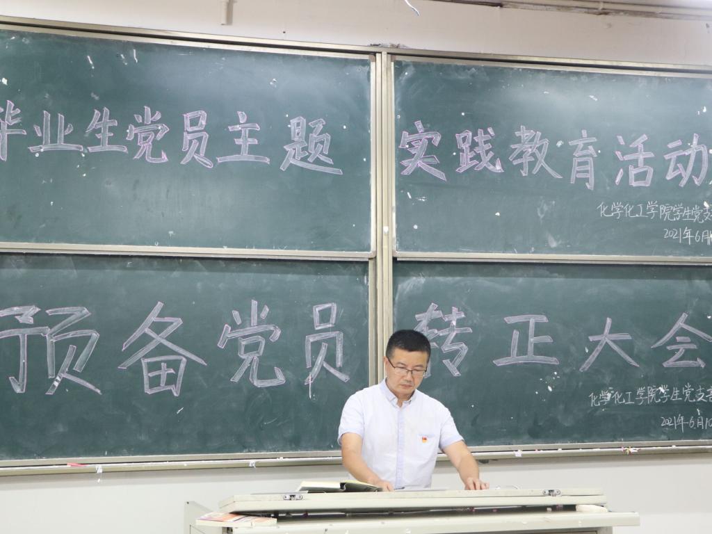 2021年6月10日12:20,英国beat365官方网站英国beat365官方网站学生党支部在南坝校区100教室召开了支部大会研究预备党员转正工作并针对毕业生党员开展了主题党史学习教育,党总支副书记潘维主持本次会议,党总支书记朱朝菊出席。学工办副主任崔宝玉,思想政治辅导员张魏霞、罗云,各位预备党员入党介绍人以及39名学生党员共同参加了此次会议,本次会议研究了赵删等9名中共预备党员是否能够按期转正的问题。