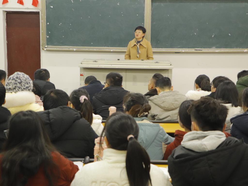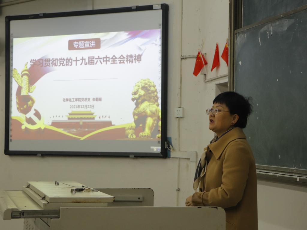 为深入学习贯彻党的第十九届六中全会精神和省十一届十次全会精神,2021年12月22日下午17:10,英国beat365官方网站党总支书记朱朝菊在一教楼100教室作“党的第十九届六中全会精神”专题宣讲,学院全体教职工和部分学生党员参加此次宣讲会议。