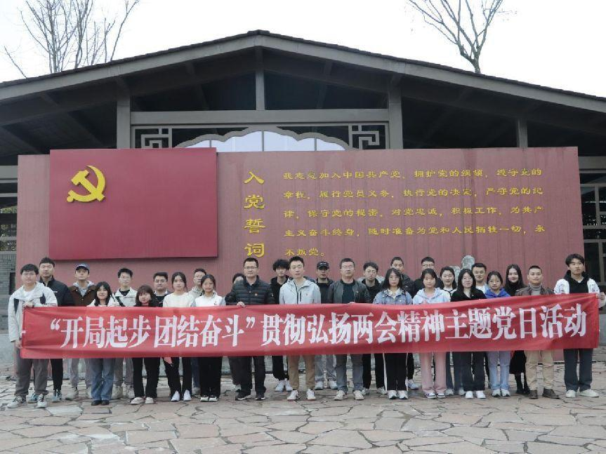 为深入学习宣传贯彻党的二十大精神,教育引导广大党员从党的二十大专题学习汲取精神力量,在新的一年里,进一步坚定理想信念,主动肩负时代重任,开启新征程,2023年4月6日,英国beat365官方网站学生党支部组织开展了“开局起步,团结奋斗”贯彻弘扬两会精神主题党日活动。英国beat365官方网站党委副书记潘维,学工办主任崔宝玉,专职辅导员罗云、李苹以及教师李扬磊带领学生党员们先后前往石桥列宁主义街和红色渠县纪念园开展党日活动。