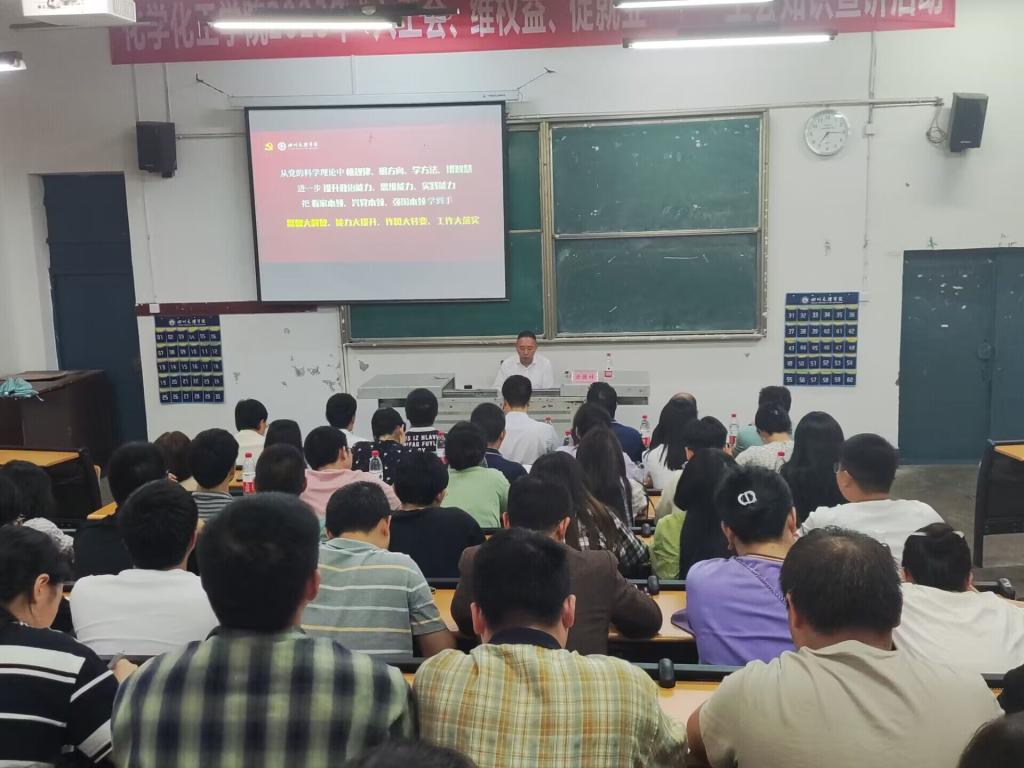 为认真贯彻落实中央、省委关于主题教育部署要求,不断深化对习近平新时代中国特色社会主义思想的理解与运用,提高运用党的创新理论指导实践、推动工作的能力,按照学校党委安排,6月15日晚,学校党委常委、组织部长、统战部长涂德祥教授在南坝校区弘致楼111教室讲授了题为“强化理论学习转观念、紧扣申硕目标抓发展”的专题党课。