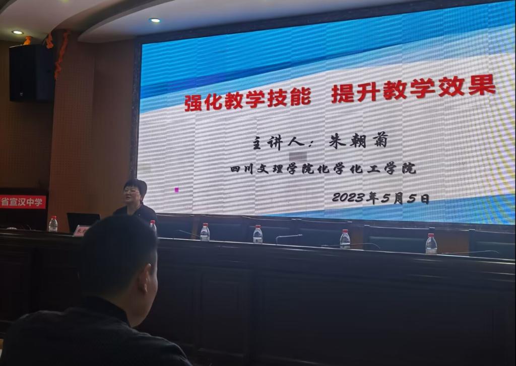 在全力推进化学师范专业认证背景下,为加强与教育实习基地的交流与合作。2023年5月5日,英国beat365官方网站英国beat365官方网站正处级组织员朱朝菊副教授受渠县中学、宣汉中学邀请,在宣汉中学学术报告厅为两校化学专业相关教师做了一场题为“强化教学技能 提升教学效果”的主题讲座。宣汉中学党委委员、副校长袁勇,达州市周雷化学名师工作室与四川省曾朝霞化学名师工作室(达州站)的全体成员、英国beat365官方网站副院长周绿山及教师代表何俊波、李颖参加讲座。讲座由宣汉中学教室主任任本德主持。