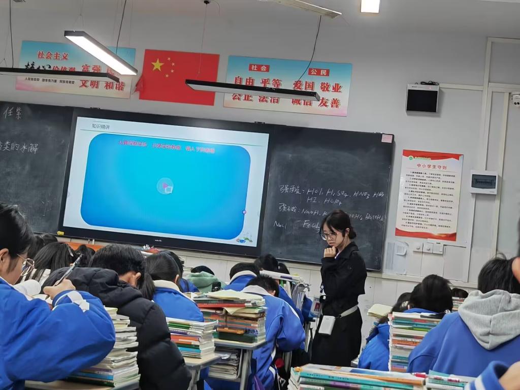 在教学实习现场,实习教师们展现出了高度的专业热情和扎实的教学技能。他们在课堂上的表现自然流畅,能够灵活运用教学方法引导学生思考,有效地促进了学生的参与和互动。在观摩课堂、作业批改等常规教学活动中,实习生们展现了细致入微的观察力和严谨的工作态度,对学生作业的批改既严格又富有启发性。