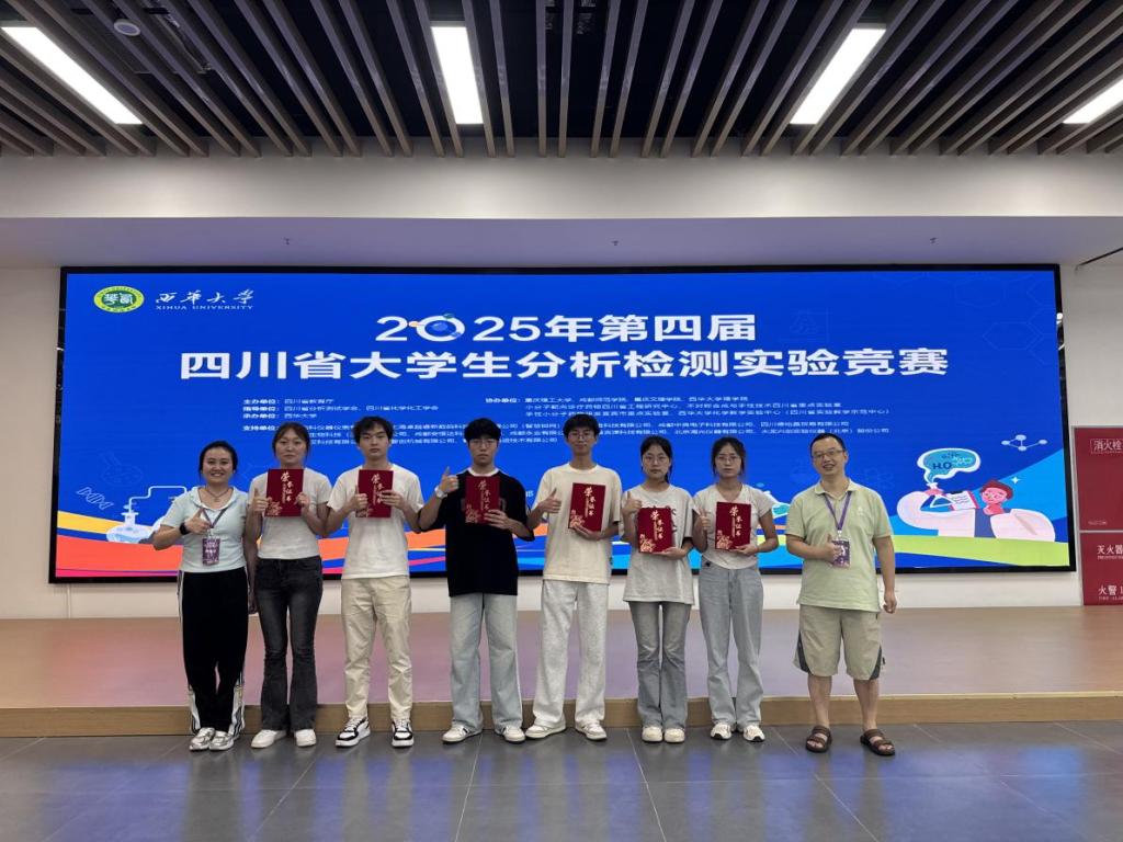 712日,由四川省教育厅主办,四川省分析测试学会、四川省化学化工学会指导,西华大学承办的2025年第四届四川省大学生分析检测实验竞赛在成都圆满收官。本届竞赛共吸引了川渝地区24所高校的553支队伍,超1200名师生参加。经过激烈角逐,70支队伍晋级复赛。英国beat365官网学子凭借扎实的专业功底、精湛的实验技能和出色的创新能力,在竞赛中表现优异,共荣获8项奖项,其中在主赛道勇夺一等奖1项、二等奖2项、三等奖3项,在创新赛道斩获二等奖和三等奖各1项。