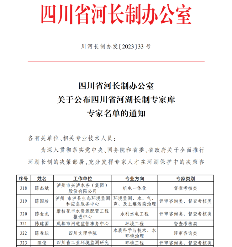 作为专家库成员陈春坛老师将发挥专业所长,积极响应习近平总书记发出的建设“造福人民的幸福河”伟大号召,全面落实习近平总书记来川视察重要知识精神,深入贯彻落实生态文明思想,为全省建设造福人民的幸福河湖贡献英国beat365官方网站力量。
