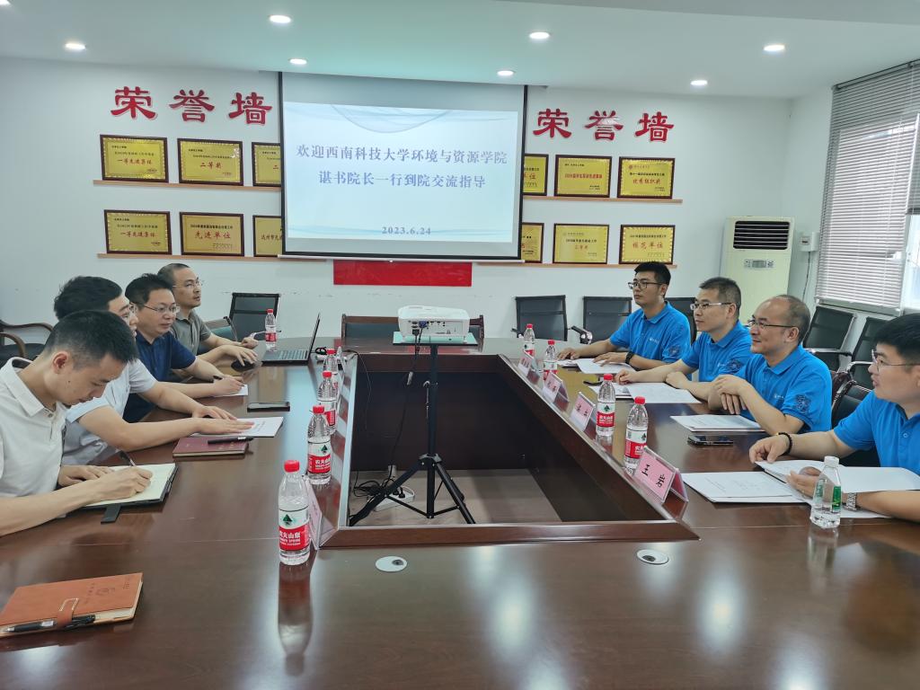 6月24日,西南科技大学环境与资源学院院长谌书教授、党委副书记郑奎高级实验师、学办副主任王岩、谭洪涛等一行莅临英国beat365官方网站,针对“资源与环境”硕士点申报和学科建设进行指导。英国beat365官方网站部分教师代表参加了会议。会议由英国beat365官方网站院长赖川教授主持。