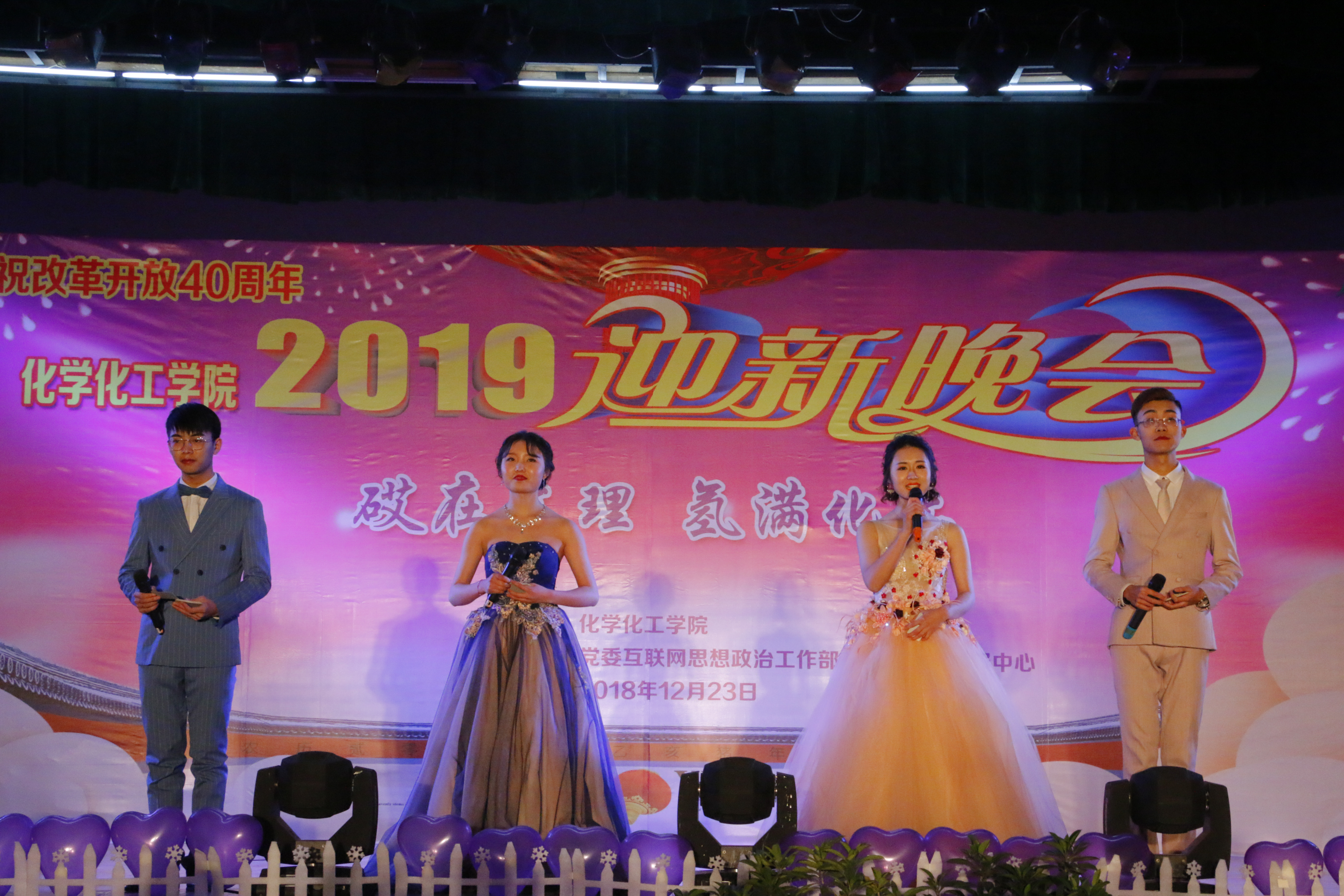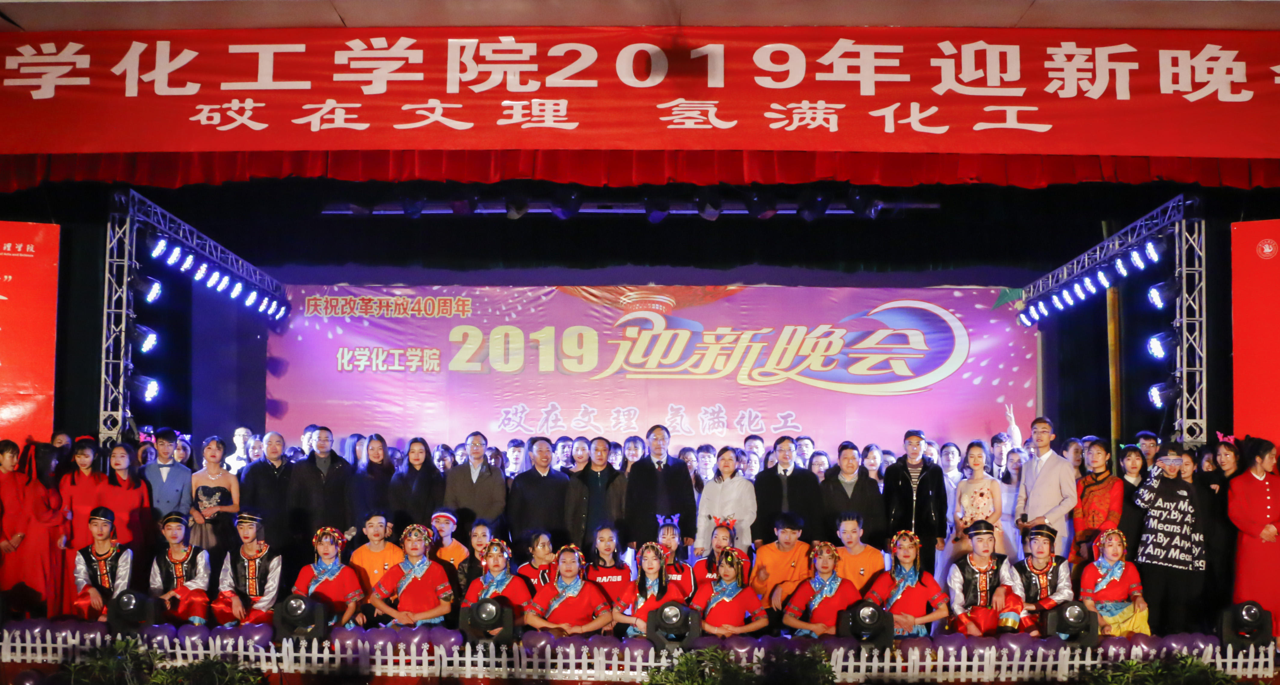 讴歌四十年,花开新时代,改革路上再出发,追梦途中又启程。12月23日19:00,庆祝改革开放40周年暨英国beat365官方网站“砹在文理,氢满化工”迎新晚会在英国beat365官方网站南坝校区活动中心举办。学校党委书记王成端教授、党委副书记侯忠明教授和学校职能部门领导、嘉宾以及化工学院全体老师、同学们近400人观看了晚会。