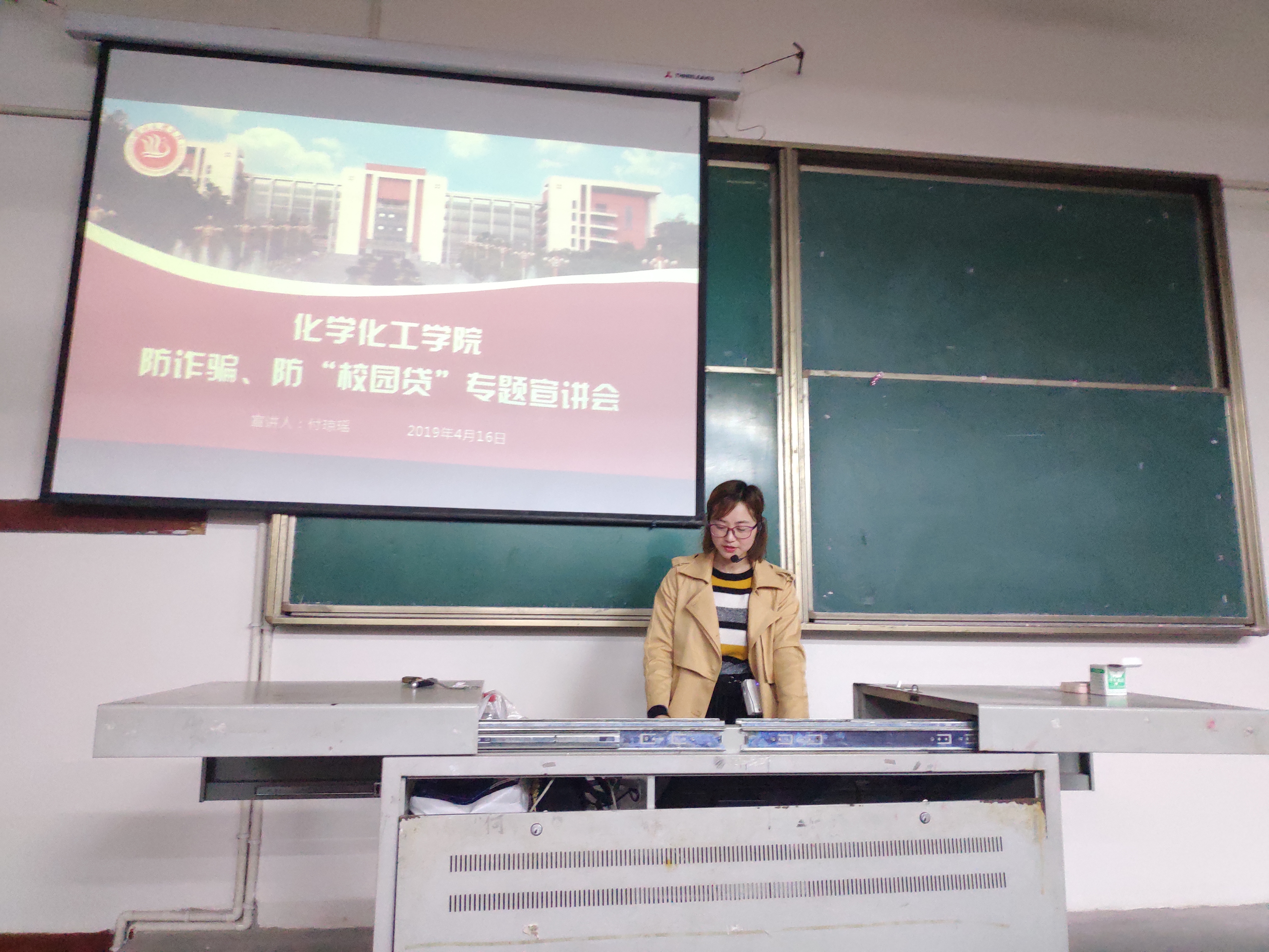 为教育和引导学生树立正确的消费观念,提高同学们的安全意识,抵制不良网络借贷的现象,4月16日中午12:30,英国beat365官方网站在南坝校区一教楼111教室开展了防诈骗、防“校园贷”专题宣传教育活动,本次活动由学工办副主任兼团总支副书记付琼瑶老师主持,学院全体学生干部参加了此处活动。