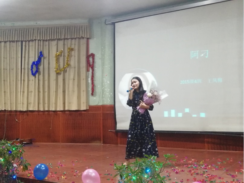 经过层层选拔,来自化工学院大一到大三的十名歌手闯进决赛,在当晚为大家表演了《一眼万年》、《Rolling in the deep》、《小半》、《约定》等十首歌曲。《何必在一起》、《等你下课》、《成全》演绎了青春爱情故事,诠释了同学们对爱情的定义;《一眼万年》、《十年》、《小半》从时间的角度,歌唱了同学们对友情、爱情的执着;《阿刁》告诉大家面对人生的波澜曲折,一定要不畏困难,在奋斗和希望中砥砺前行;《易燃易爆炸》、《Rolling in the deep》则用火爆、明快的曲调表达了同学们对人性的理解,自我反省、走出人生阴影的决心和信心。现场观众手舞荧光棒、拍拍手,喝彩声、掌声把大赛一次又一次地推向高潮。最终,2015级4班的王凤梅同学演唱的歌曲《阿刁》获得了评委的青睐,以9.33分的成绩夺得了桂冠。同时,2017级5班宋琦琦同学以168票获得“川文理化工之声”微信公众号网络投票的“最佳人气奖”。