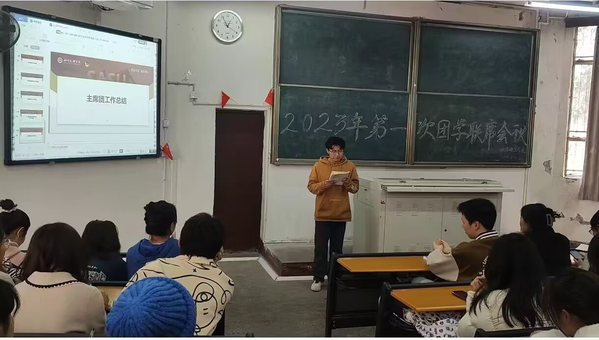 为了更好的推进和落实学院团组织学生会的工作,加大内部工作管理,增强部门间协作能力,2023年3月3日学院于一教楼100教室召开了2023年第一次团学联席会议。英国beat365官网学生会主席团成员和各部门代表到场参加会议。