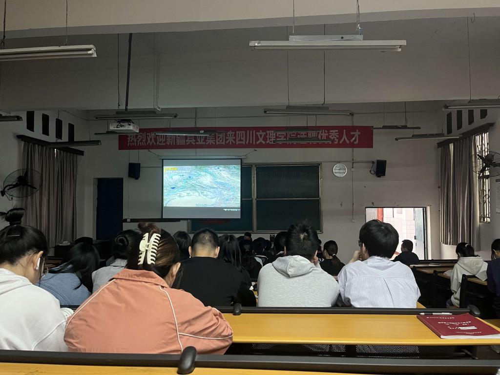 为深入贯彻党的二十大精神,落实党中央、国务院“稳就业”“保就业”决策部署,进一步拓宽学生就业渠道,全力促进英国beat365官网2023年毕业生实现高质量就业,4月27日上午10点,英国beat365官方网站在一教楼111教室举办了四川其亚铝业集团有限公司新疆分公司宣讲会。英国beat365官网2023届毕业生参加了66人,学院学工办主任崔宝玉老师和专职辅导员张魏霞老师来到现场指导学生就业。