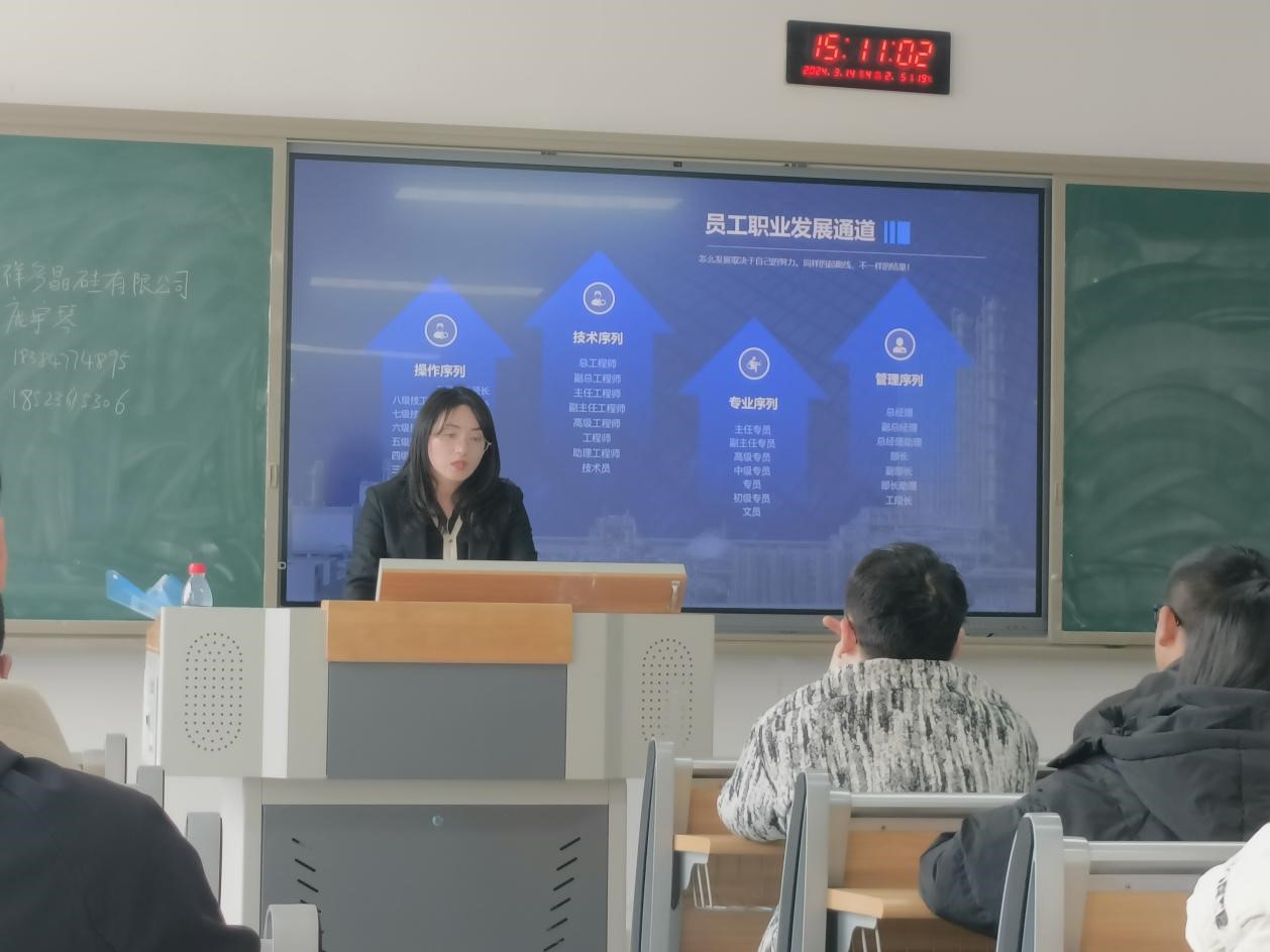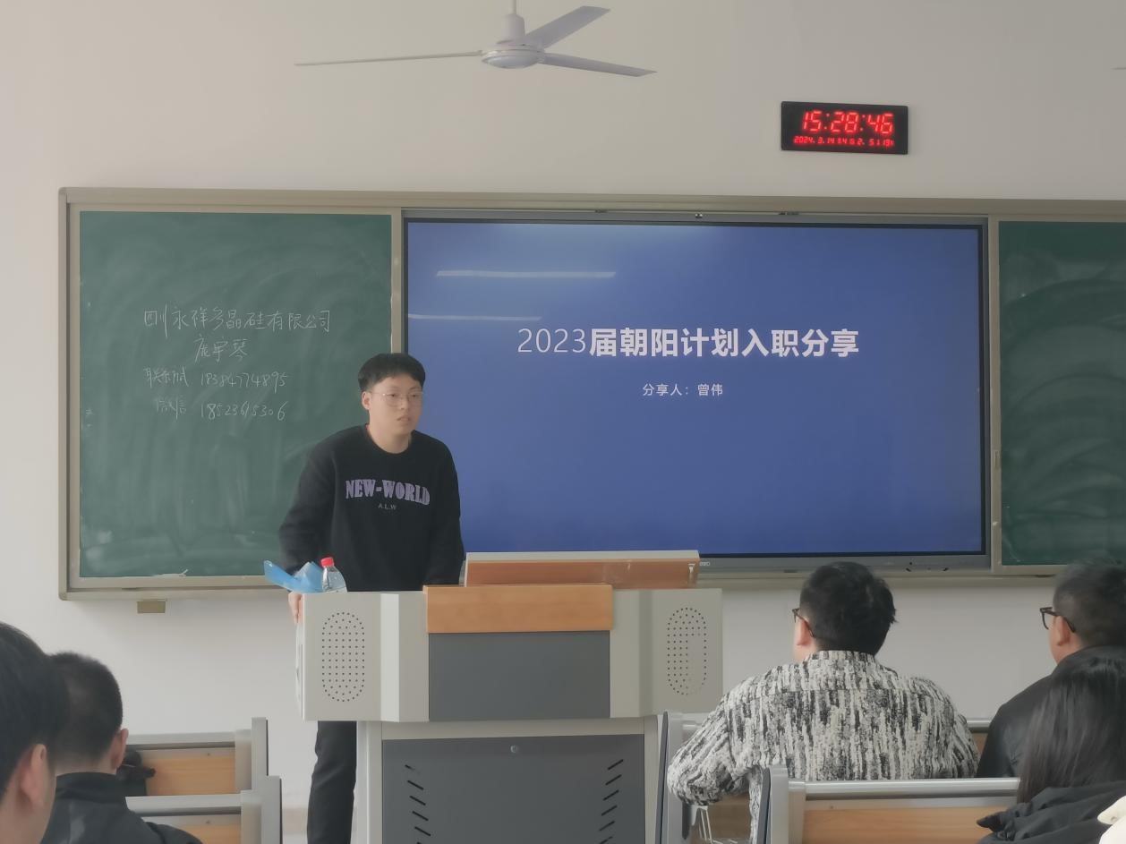 为了给毕业生提供更好的就业机会,帮助企业引进优秀人才,2024年3月14号下午三点,四川永祥多晶硅有限公司在英国beat365官方网站东区A208顺利召开校园专场招聘会。出席此次宣讲会的有四川永祥多晶硅有限公司招聘经理庞宇琴、胡尧。另外,英国beat365官网2019级毕业生曾伟作为四川永祥多晶硅有限公司的工作人员也来到现场,英国beat365官方网站专职辅导员罗云、王练练出席此次会议,英国beat365官方网站2020级毕业生参与,现场到会学生40余名。