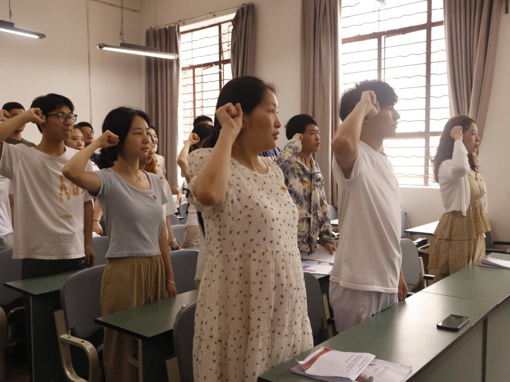 最后,潘维副书记带领转正党员宣读入党誓词,并对大会作总结发言,对按期转正的罗润平同志表示衷心的祝贺,并对学生第一党支部的党员和积极分子提出了殷切希望,希望他们能够严于律己,在广大青年中充分体现党员的先进性,发挥党员的先锋模范带头作用。