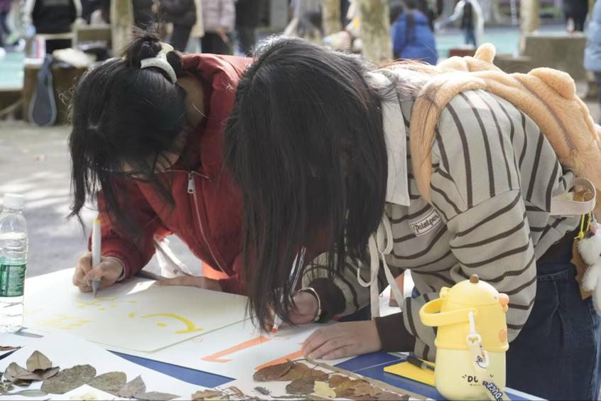 活动中,同学们积极参与,热情高涨。在“情绪表达工作坊”里,同学们全神贯注地创作,将内心的情绪付诸画笔,随后彼此交流分享,解读画作中的情感密码;在“暖心串珠小乐趣”现场,大家沉浸于彩珠的串连,为每一串彩珠赋予它特别的情感寓意;而“心理树洞倾诉会”中,同学们坦诚地将心中的喜怒哀乐书写于纸上,并从“树洞”抽取纸条,以安慰与鼓励回应,字里行间尽显温情。活动现场气氛热烈,情谊暖暖。