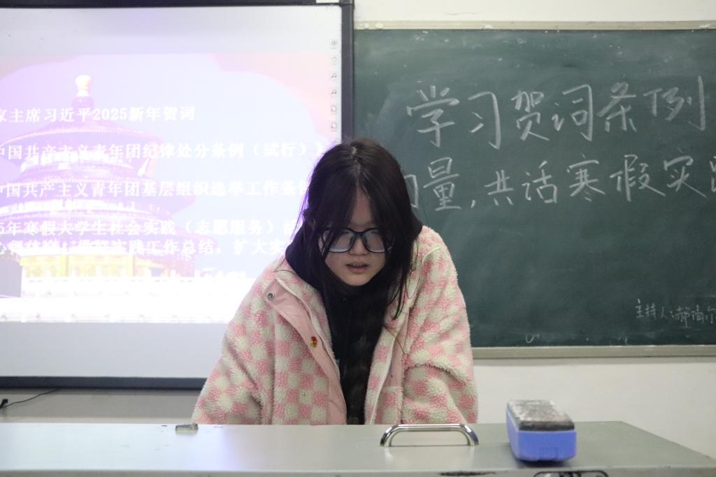 活动伊始,各团支部带领同学们共同学习国家主席习近平二〇二五年新年贺词精神,从贺词的字里行间中感受与时偕行的中国力量。通过对贺词中关键内容的解读与讨论,同学们深刻领会到国家发展的伟大成就以及青年所肩负的历史重任,进一步坚定了青年团员的理想信念。