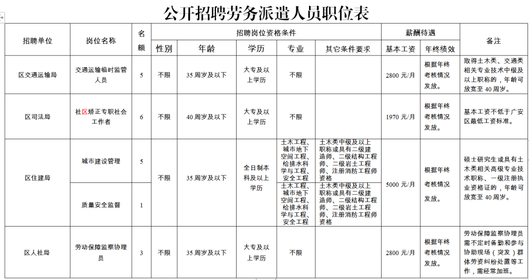 转发“2023年广安市广安区交通运输局、司法局、住房和城乡建设局、、人社局招聘劳务派遣人员公告(川文理就[2023]00616)”