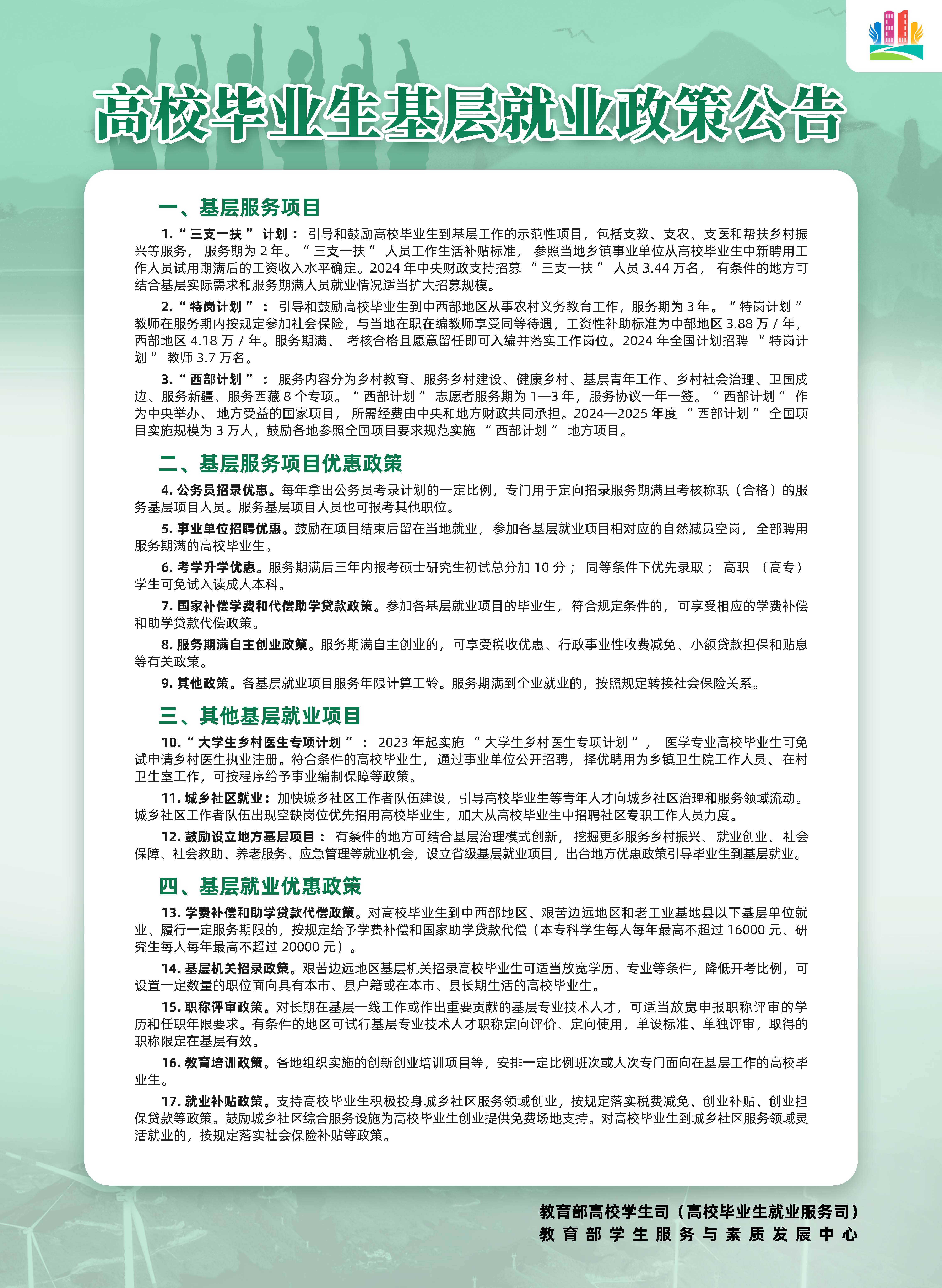 转发“ 高校毕业生基层就业政策公告”